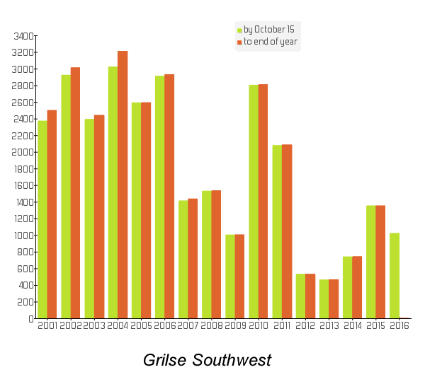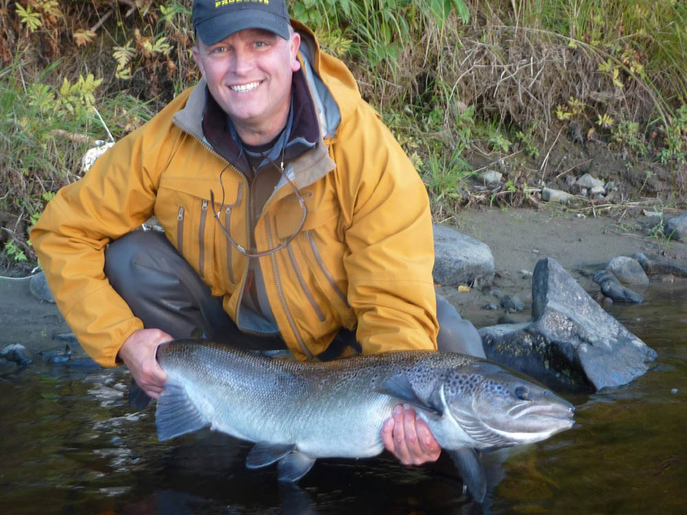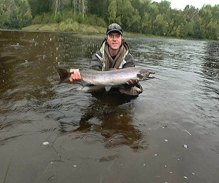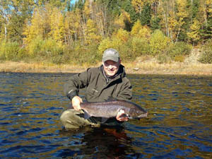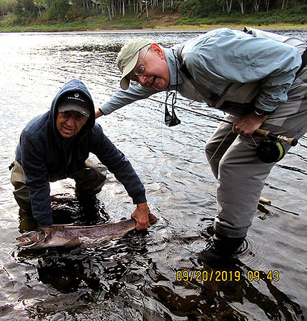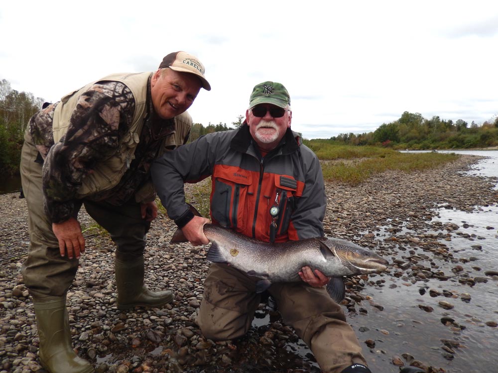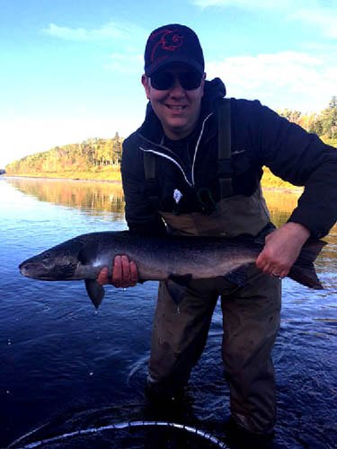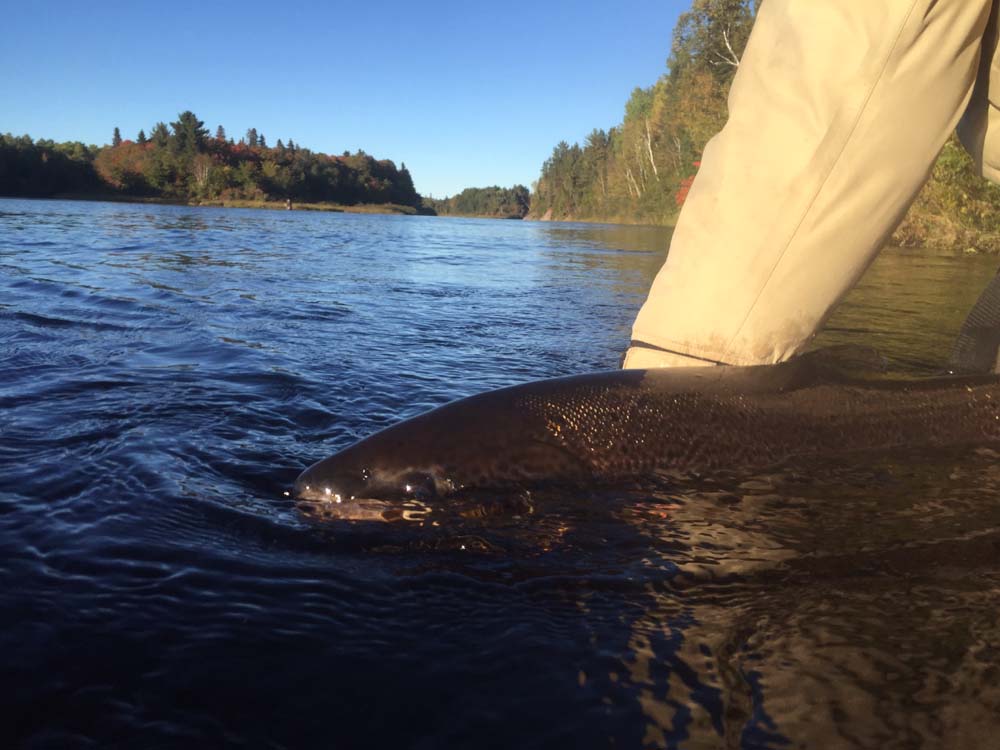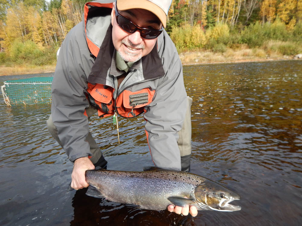 It has not been another great week for this time of year but it was much better than last week and we landed some big fish, with a couple in the low 20 lb range and another at 28lbs, and as silver and fresh a salmon as you might see in June. Although most of the fish caught this week are ones that have been in the system for a while there are now more and more fresh fish arriving daily with the tides. Since Friday morning we have seen more fresh fish than we have seenm since early July, with a few jumping grilse among them - something we have not seen in quite a while and it seemed like every fish that was in the river this year was a salmon. Yesterday was also one of the better days in a while and at the trap net in Millerton, approximately 140 fresh fish moved into the system - a small number compared to other times but enough to create hope that it is the start of our fall run. Our anglers who fished the lower stretch of the river last evening landed some nice salmon just before dark. We did get a 1 foot bump in water levels on the Cains and the lower stretch of the Main River below the Cains so we are hoping the pools on the Cains might start giving better results over the next few days. The Renous and Main river above the mouth of the Cains did not rise much. Flies of choice this past week were Bombers, Black Bear and the Almost.
