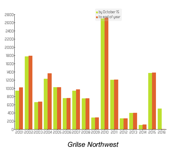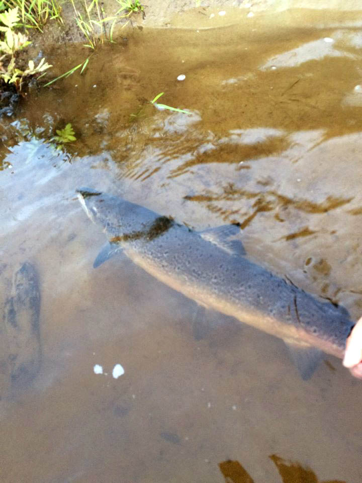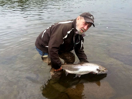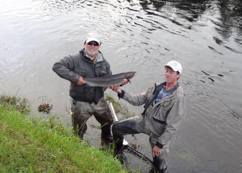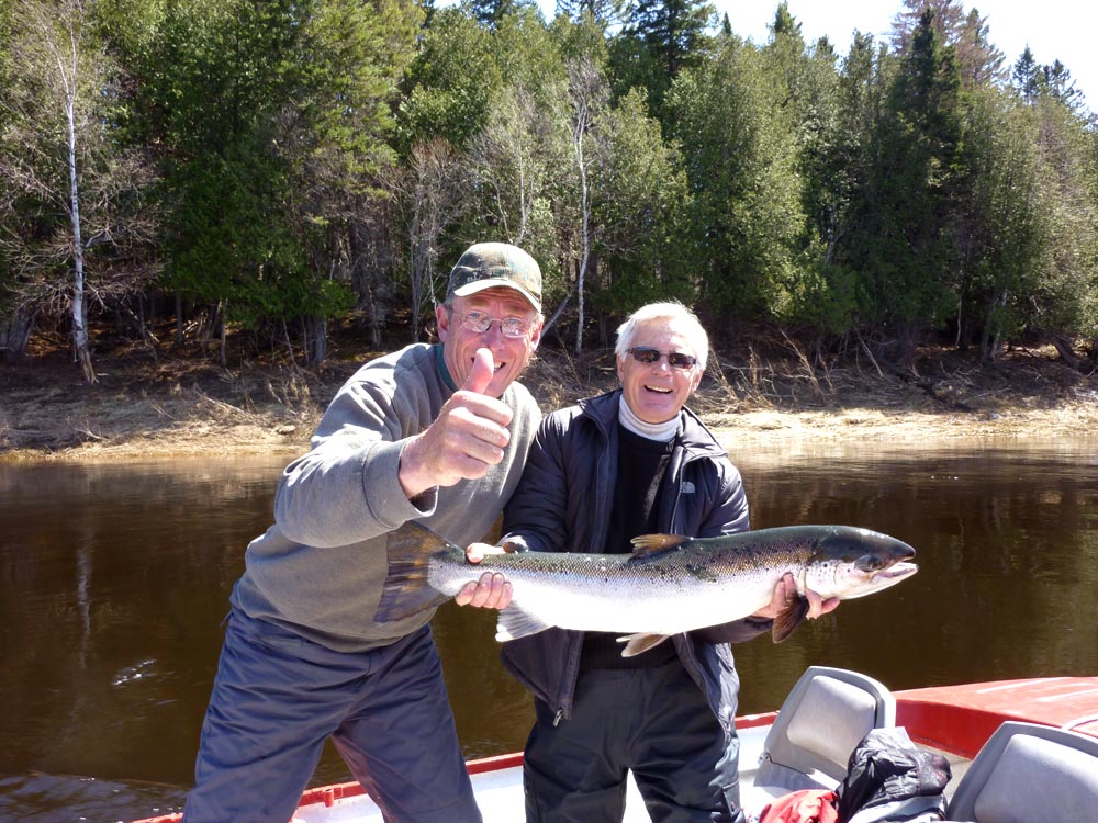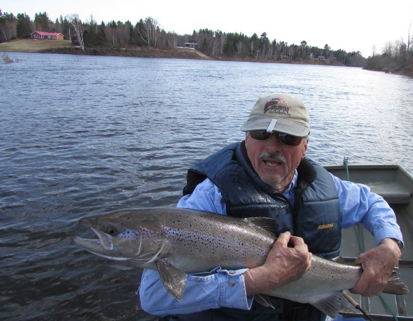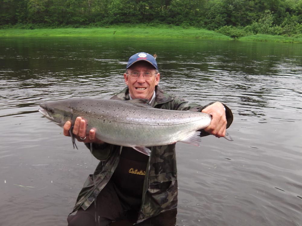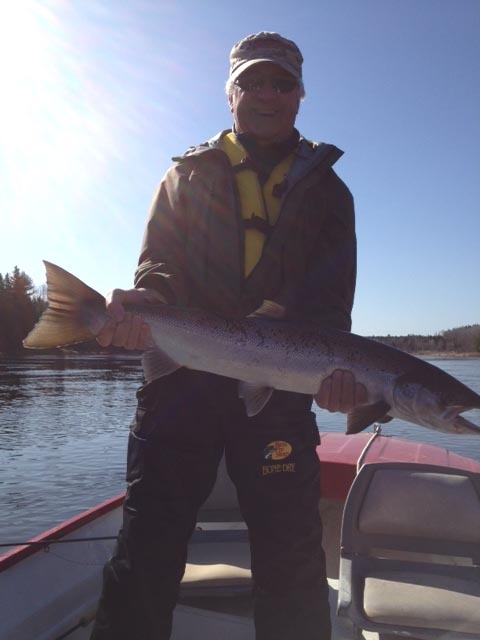 With our Spring fishing season all but over for another year, it turned out to be a much better spring than we all expected, after the hot dry summer we had last year. With the exception of a couple of slow days early in the season due to high dirty water and a few slow days toward the end due in part to low clear water and not as many grilse in the system compared to other springs, fishing was quite good including 9 straight days with all our anglers landing fish. Overall, the Salmon numbers were good with many 40+ inch fish landed however the grilse numbers were disappointing. The counters suggested 2011 had the highest numbers of return fish since the 60's with 2012 being the lowest. Overall, there was not a lot of difference in the 2012 and 2013 fishing seasons, proving once again that the local old-time fishermen must have been correct when they said the fish will come in - if not during the fishing season - then after the fishing season. Overall, the spring numbers were quite good, all things considered.