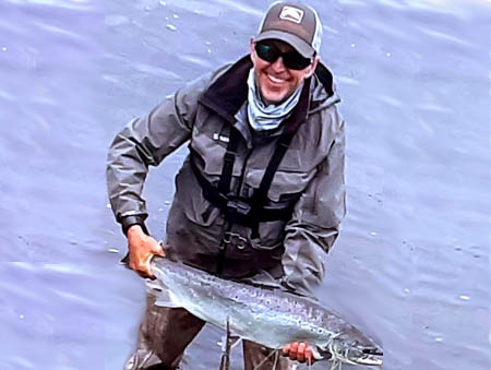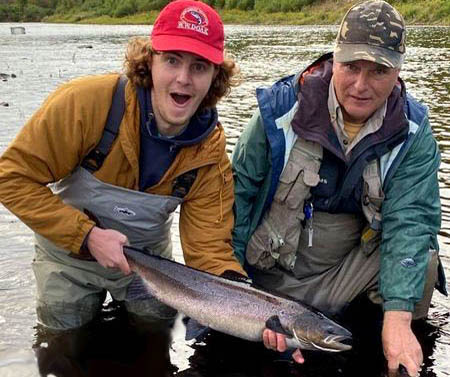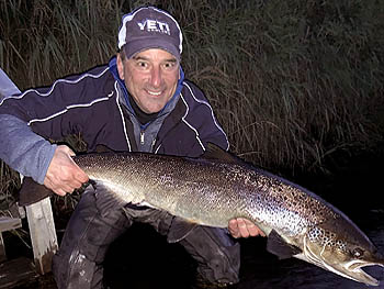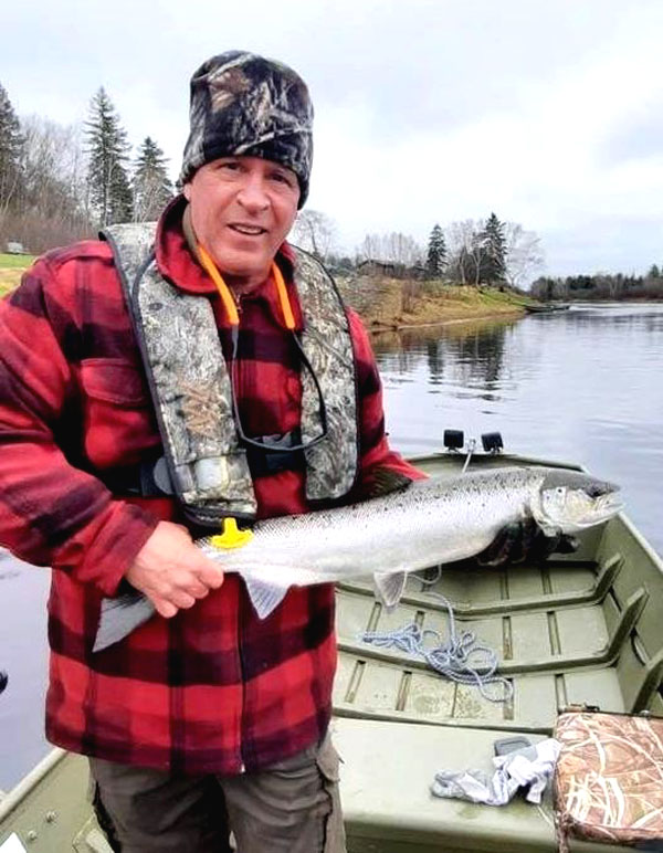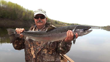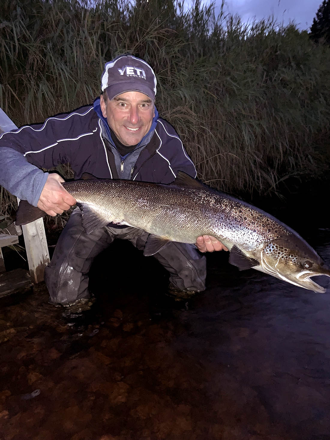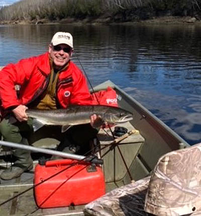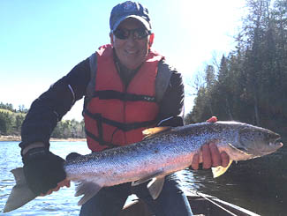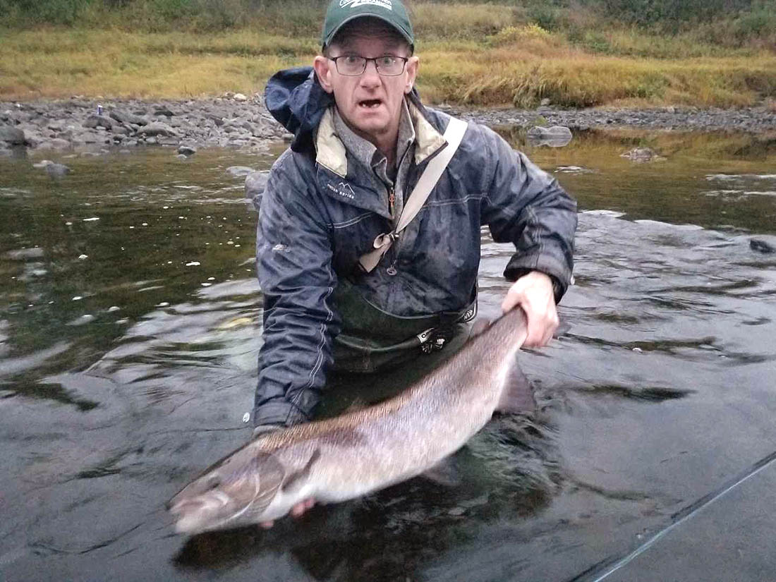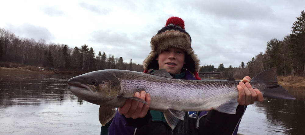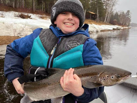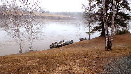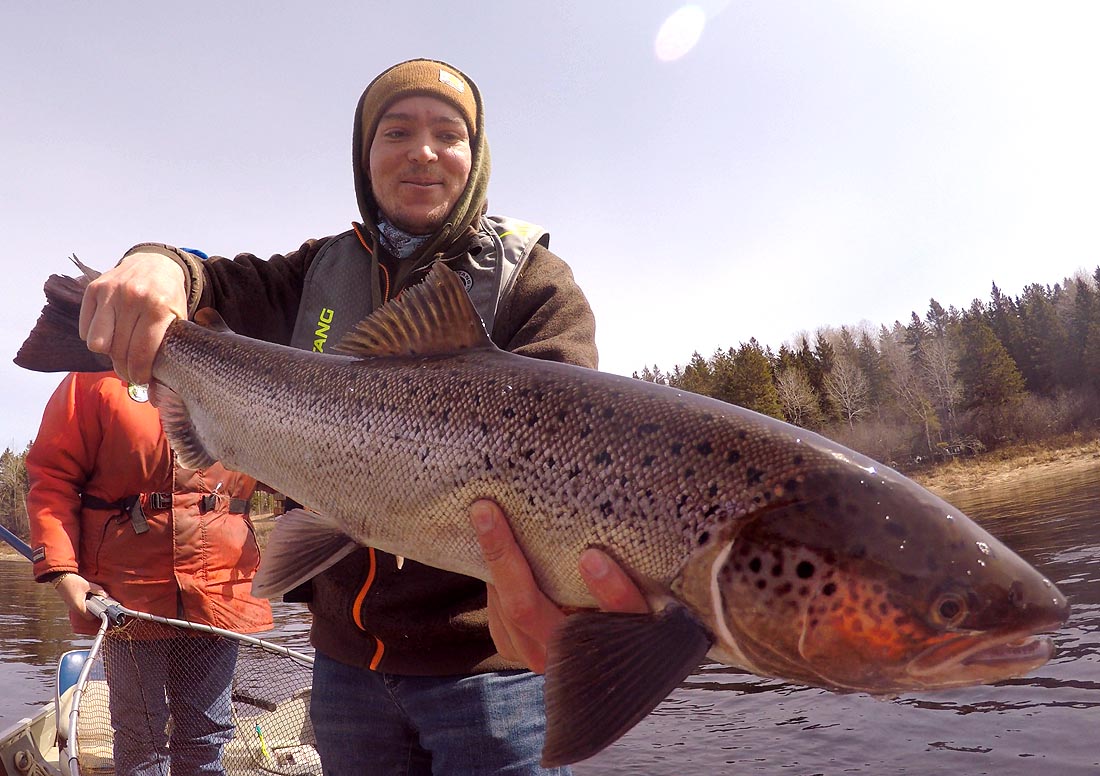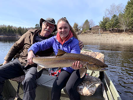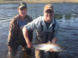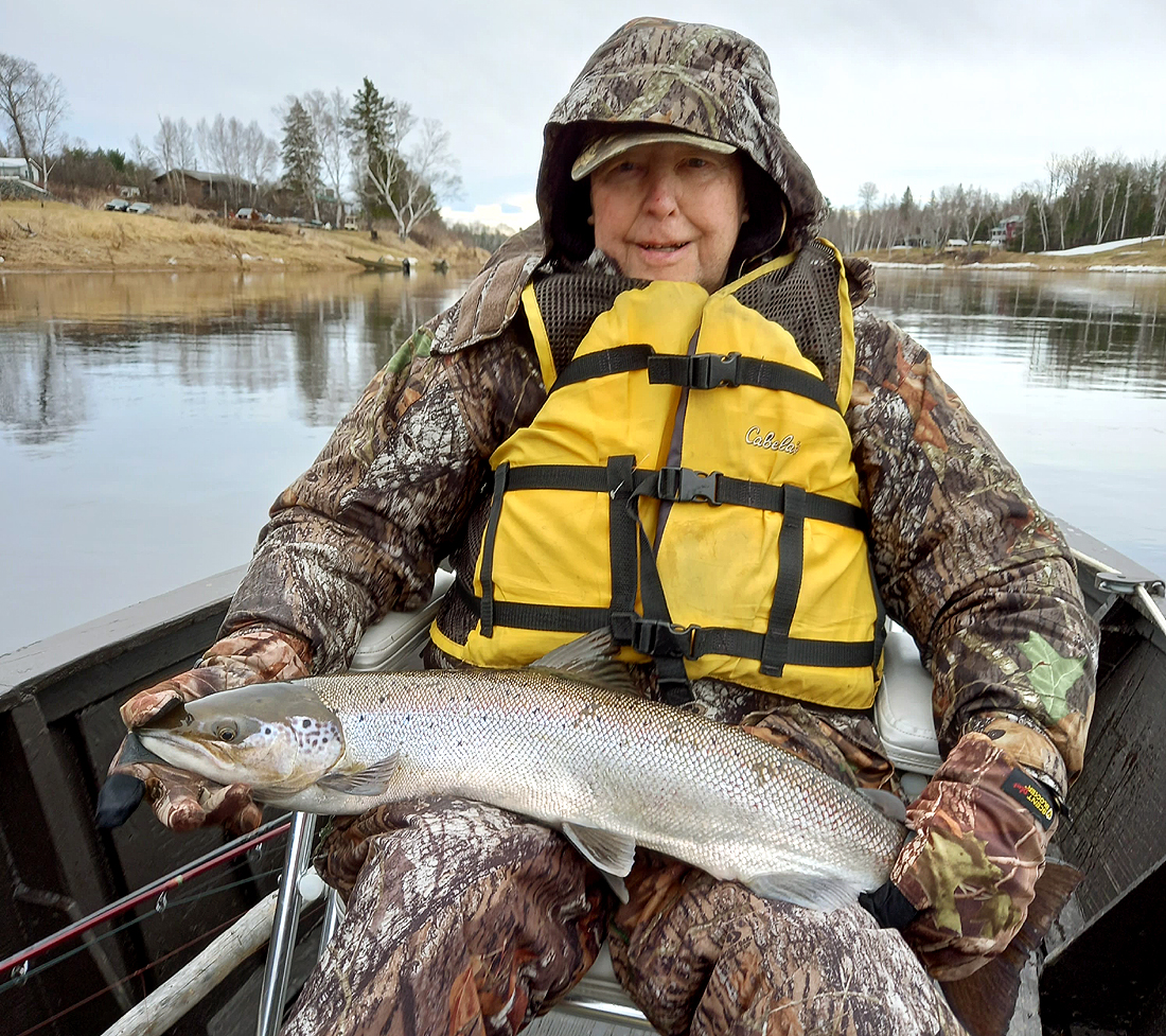 After one of the most wonderful first weeks of salmon fishing, with great weather and great fishing, the weather sure changed in a hurry, with heavy rain and winds for a number of days. Overall, however, it was still a good week for catching fish. Tuesday afternoon and Wednesday, the water rose so fishing slowed down but it picked up again on Thursday morning and good fishing continued right where it left off early Tuesday, with many anglers landing their limits daily throughout the weekend. For as long as we have been in business we have never seen such a quick rise and fall in water height! An 11 foot rise then 8 foot drop - all in only 48 hours. The rise in water levels put the damper on good fishing on Tuesday and Wednesday but it did bring some monster salmon into the system with fishermen landing good numbers of 40+" salmon every day since Thursday. With the opening of the trout season tomorrow anglers are now getting excited about landing some of those 6-7 lb. trout we land each spring. There have not yet been many big ones reported so far but we think it may still be a little early. We are still receiving good reports from salmon fishermen upriver and with the rise in water, it should be good for boating and fishing for quite a while. April 22nd