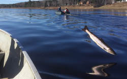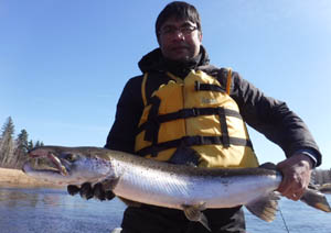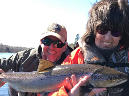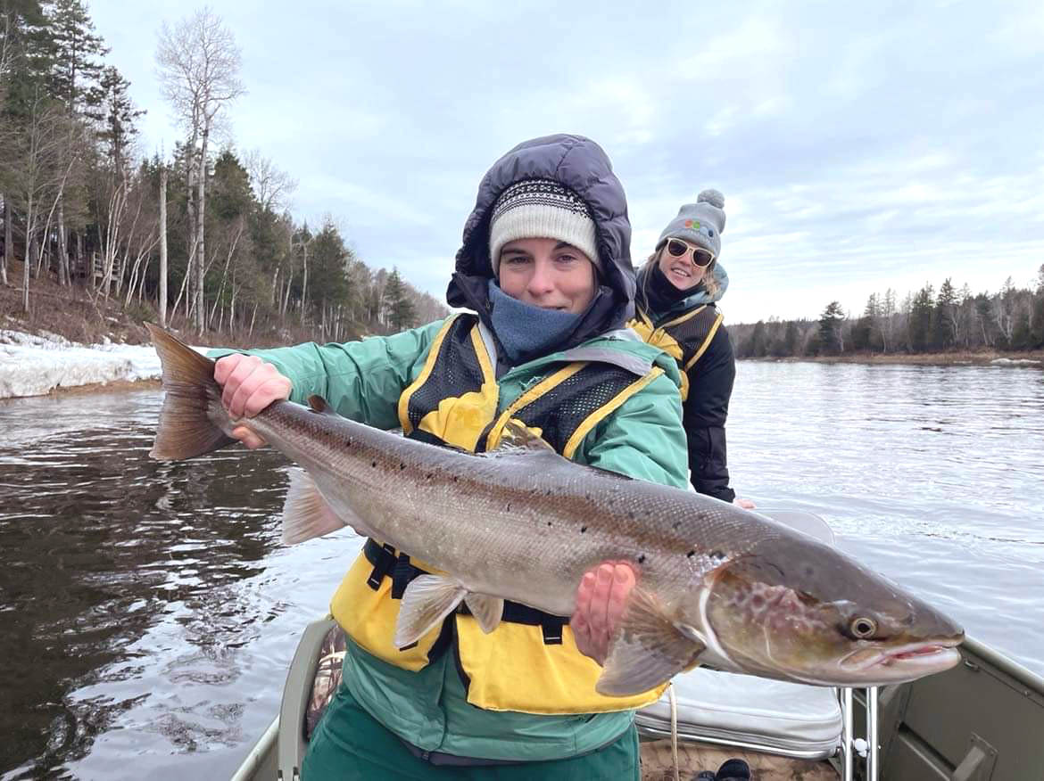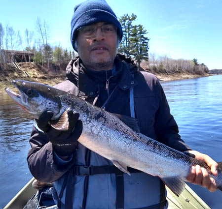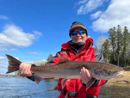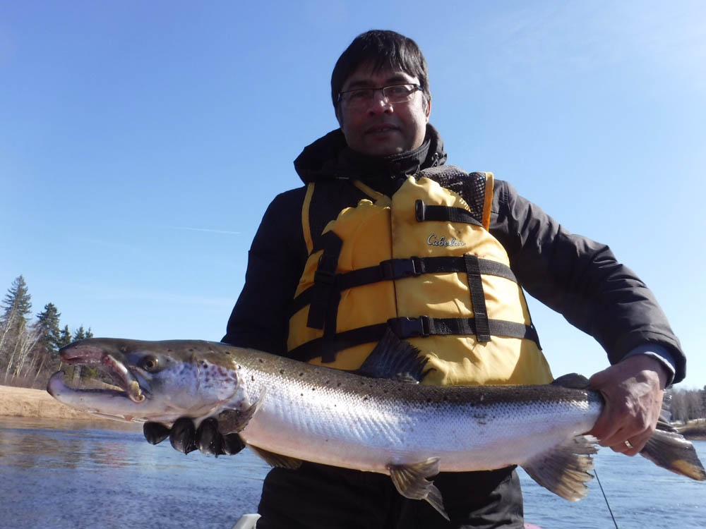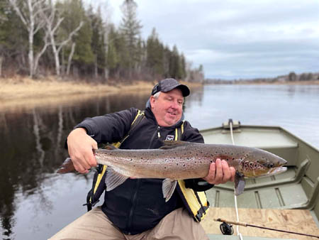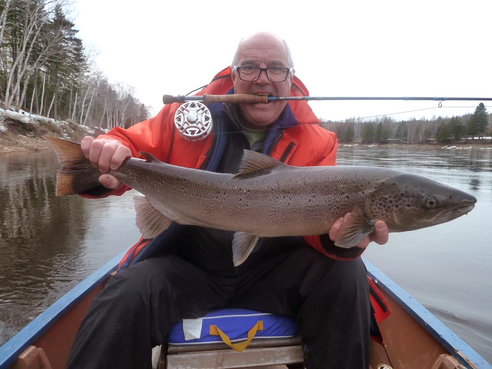 We are expecting strong spring fishing for a while as the conditions are good for keeping the fish in the river longer and we are receiving reports of quite a few fish still far upriver. Over the weekend, anglers have reported seeing fish jumping - the first sign that they are starting to move. Over the past few days, fishermen have also started hooking some nice trout in the 3-6 Lb. range, especially in the lower stretches of the Main River and on the Renous. With the Trout and Striped Bass fishing season opening on May 1st, anglers should be able to pick up some of both species while fishing for Salmon throughout the month of May.