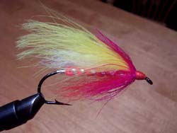 As for flies this week, the "Gray Ghost" has been the fly of choice while fishing for Salmon and Trout but with Bass there is no preference, just use up your old spring fly patterns - they will take just about anything!