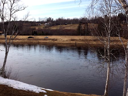 Even though the ice has gone it is still far too early to know how long good fishing will continue into the spring as much will depend on the conditions. From past experience with early springs when the ice has cleared out, the fish do not start moving down until the right water temperature. We have had early ice leaving seasons with fantastic fishing lasting into late May while there have been other years when the water dropped and warmed up early where the season was shortened by a week or more but this can still happen whether ice is gone early or not. Whatever the conditions, we know we will still have one of the longest spring seasons on the river due in part to our ideal location on the lower stretch of the Main Southwest Miramichi. At our location, we do not just get to fish for all the fish moving down the main river system but also the fish from the tributaries above us, like the Cains and Bartholemew, that swim by our door daily. The fish also tend to move out slower as they get closer and while adapting to the salt water. When conditions are right, our guides also enjoy fishing for the big trout in the faster water of the White Rapids as well as trout and salmon below the mouth of the Renous later in the spring. in Previous years when all the ice has cleared out early, the choice of options and quality of our guides always helps to ensure guests have the best fishing possible - no matter what the conditions are. On opening day our guides recommend using sinking lines and using flies such as 5/0 Christmas Tree, Renous River Special and the Golden Eagle. Although the fishing season is still a couple of weeks away, the guides start working early - fine tuning everything for opening day. This is the time to contact a fly Shop if anything is still needed as many are running spring Specials on equipment. Although most outfitters on the Miramichi have a large selection of flies to choose from there are local Miramichi Fly Shops who have everything you may possibly need to get off and running for another fishing season. Shops such as Doaks (www.wwdoak.com) in Doaktown, Curtis (www.miramichifish.com/curtis.html) in Blackville, George's Fly Shop (506 622-8226) in Renous and Syd Matchett (506 622-7598) on the Nor'west Miramichi.