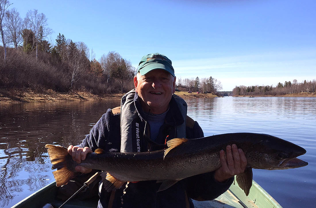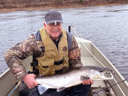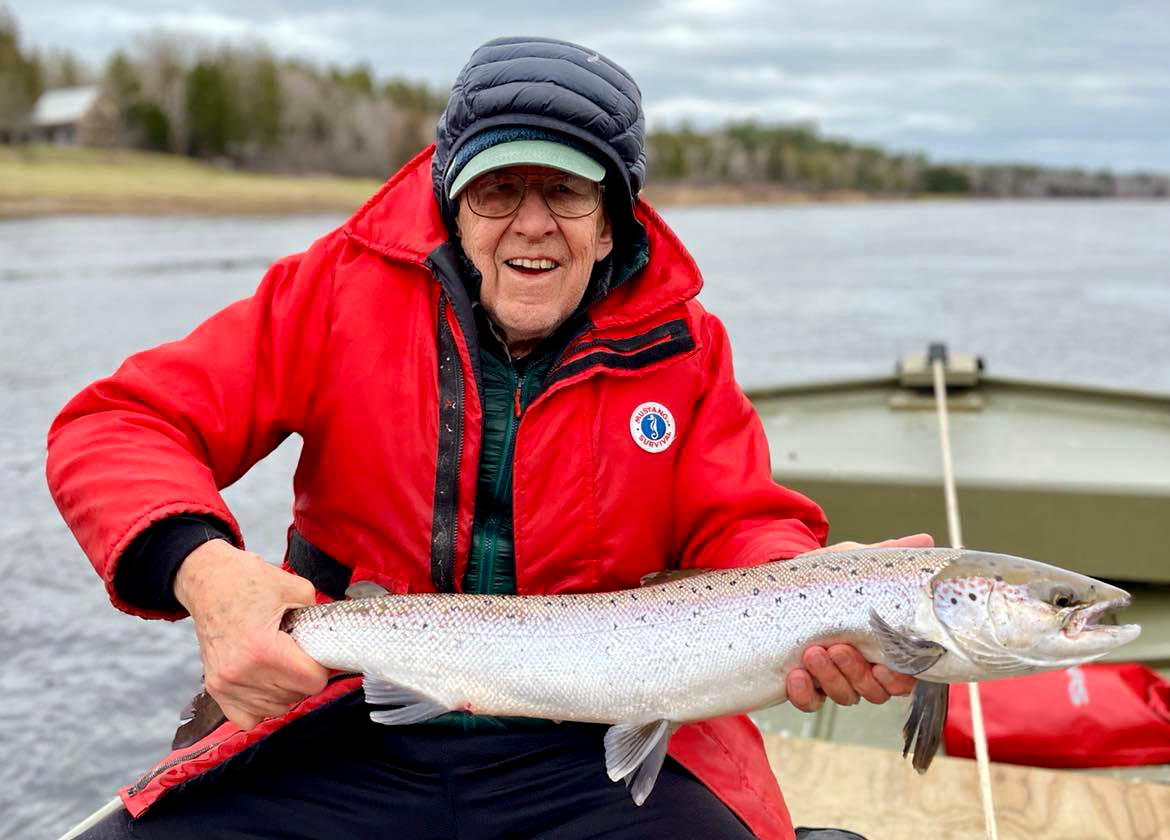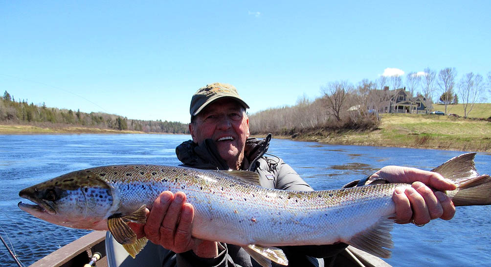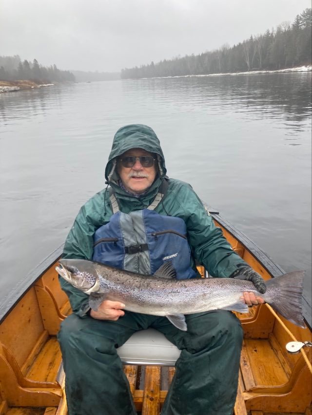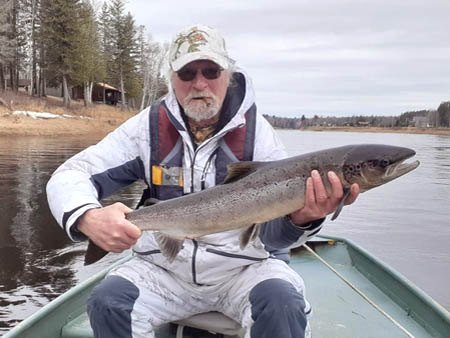 Spring Fishing on the Miramichi has been a tradition for many New Englander’s for years. This past week was no different as Mike Price from Weston MA, returned for his 54th time in the last 60 years - starting in 1963 at Tom Boyd's camp for many years, then at Black Rapids lodge,and recently returning for many of the past 20 Spring trips to Country Haven! It was a pleasure having him and friends back on the Miramichi once again this season. We expect to continue having good Spring Salmon and Trout fishing for quite a while yet. As the water warms up, the Striped Bass fishing will also improve in the lower stretches of the river. There is lots of good Spring Fly Fishing remaining on the river! Anyone who is interested in Striped Bass fishing, do visit