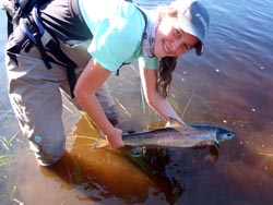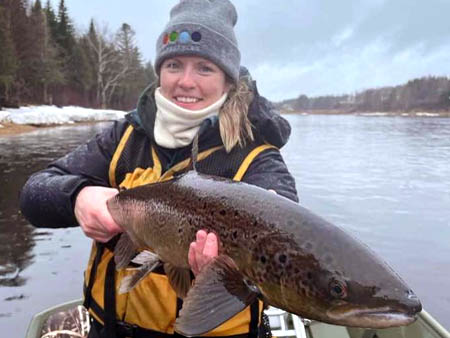 Each week we try to get a few photos of angler's catches - mostly provided by the anglers themselves. It's always nice seeing the reaction of an angler to their first Atlantic landed! I can’t think of many much better than this one of Beth Bourque from Nova Scotia this week. (see photo below)