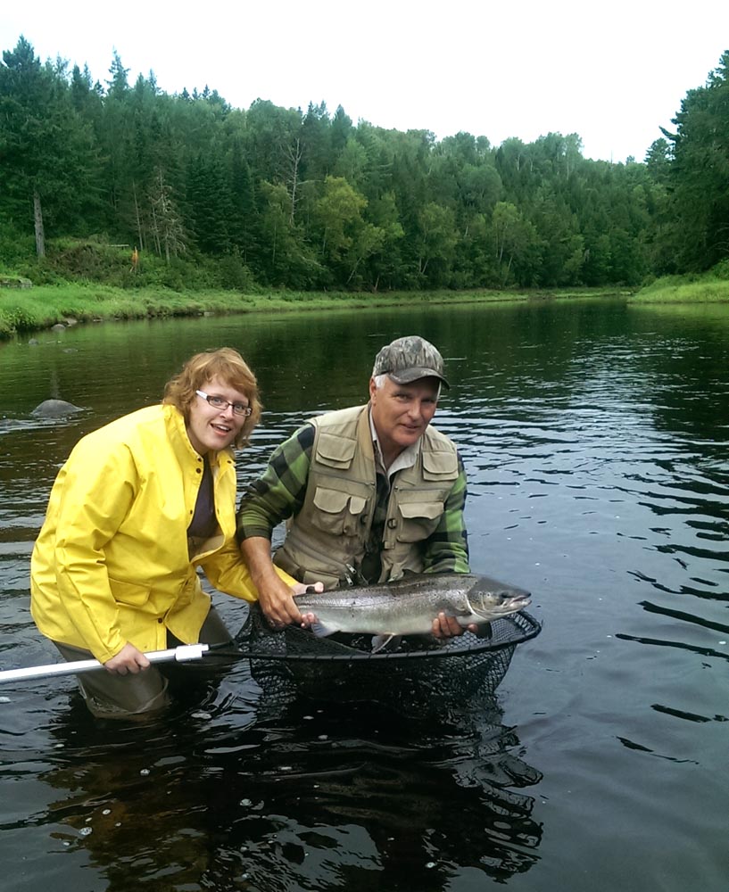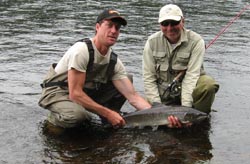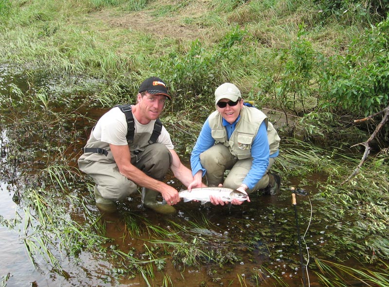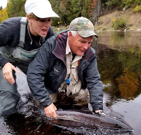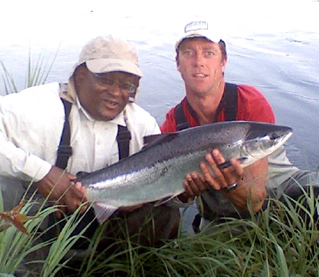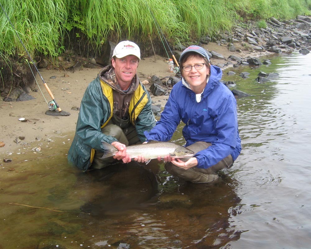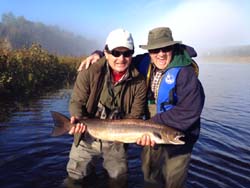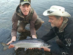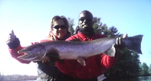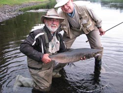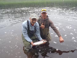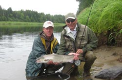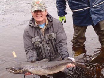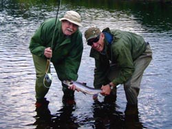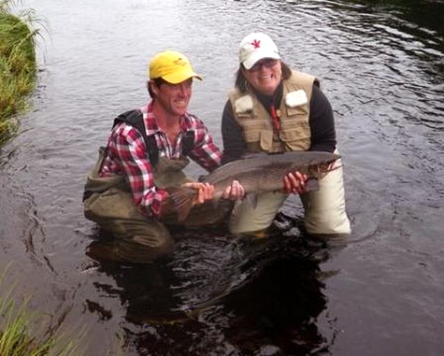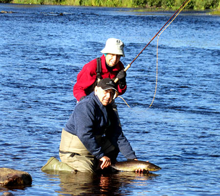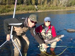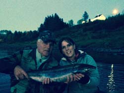![]() Carol Cherry and guide Gary Colford landing a Salmon |
