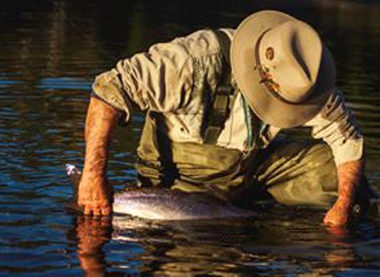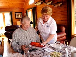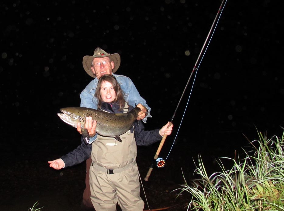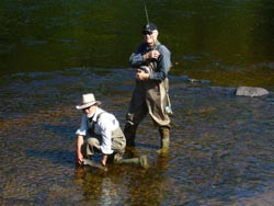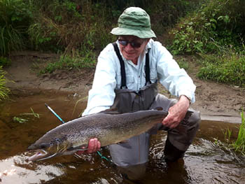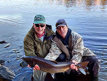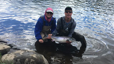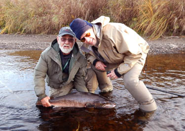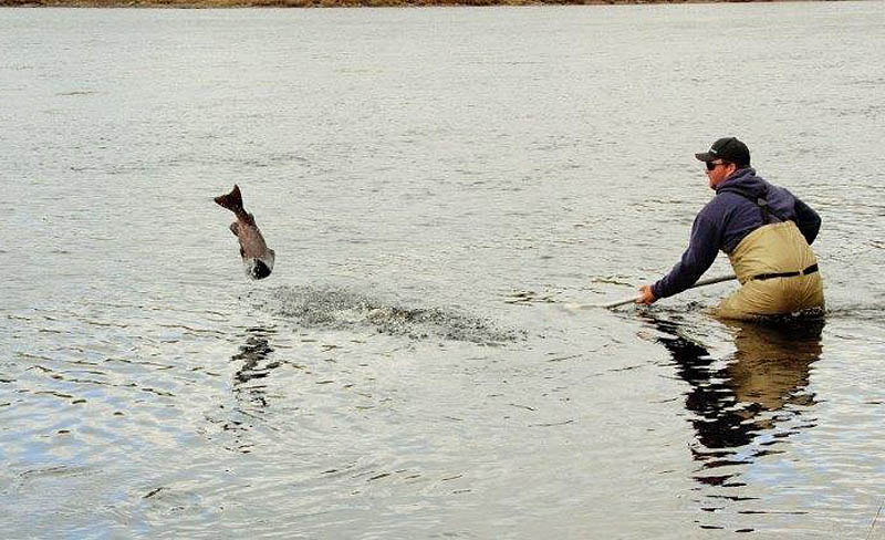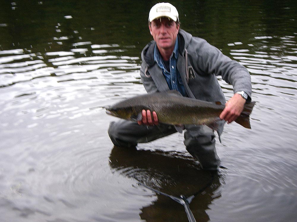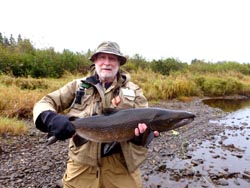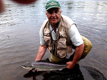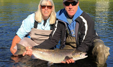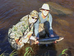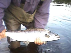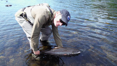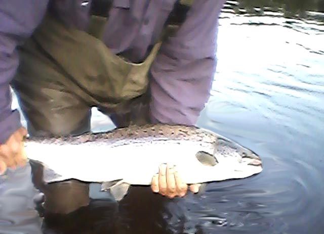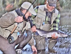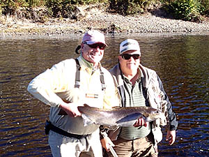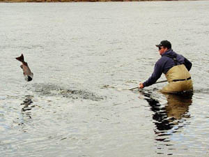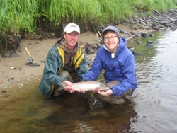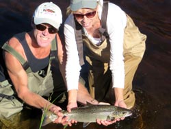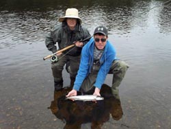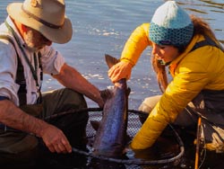 ![]() Carol Cherry and guide Gary Colford landing a Salmon |
