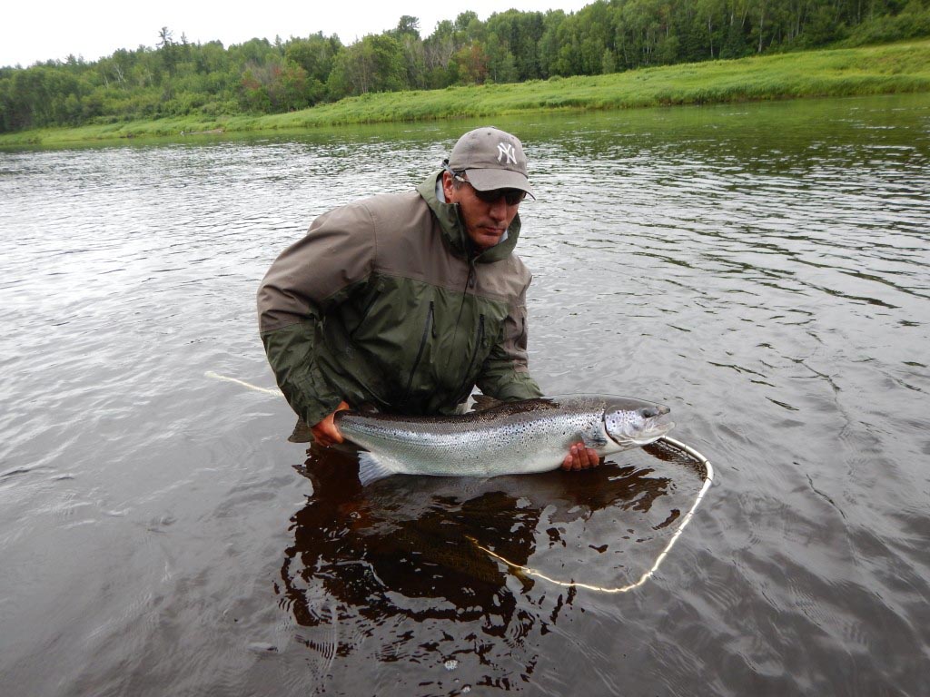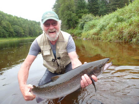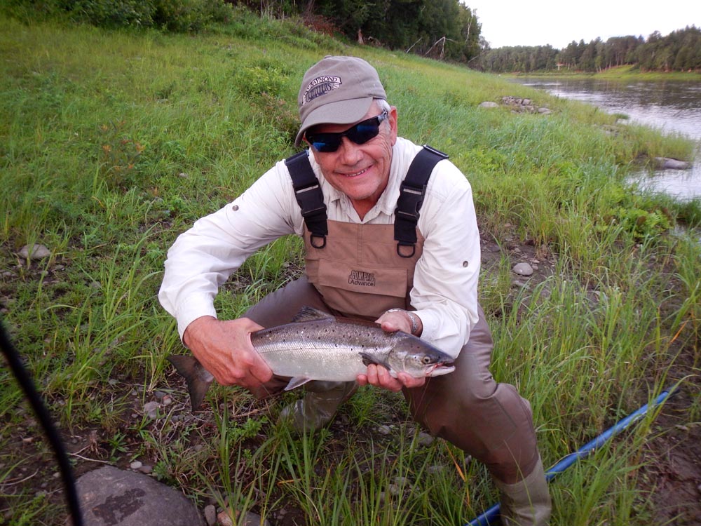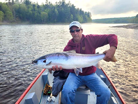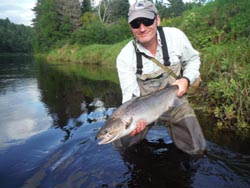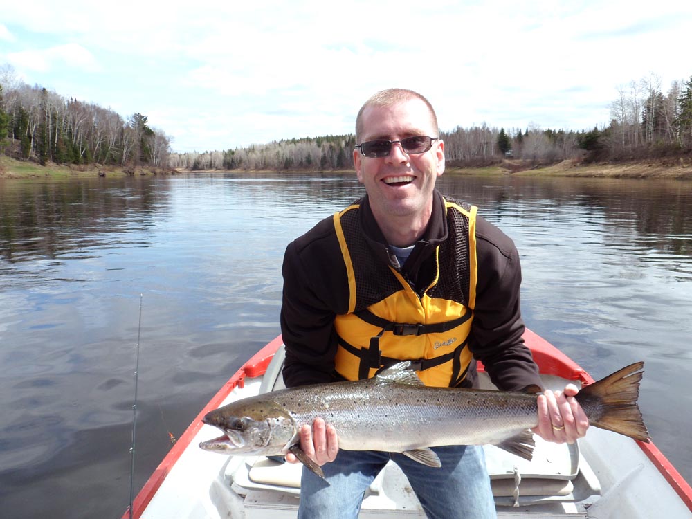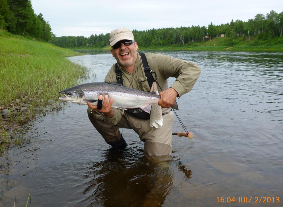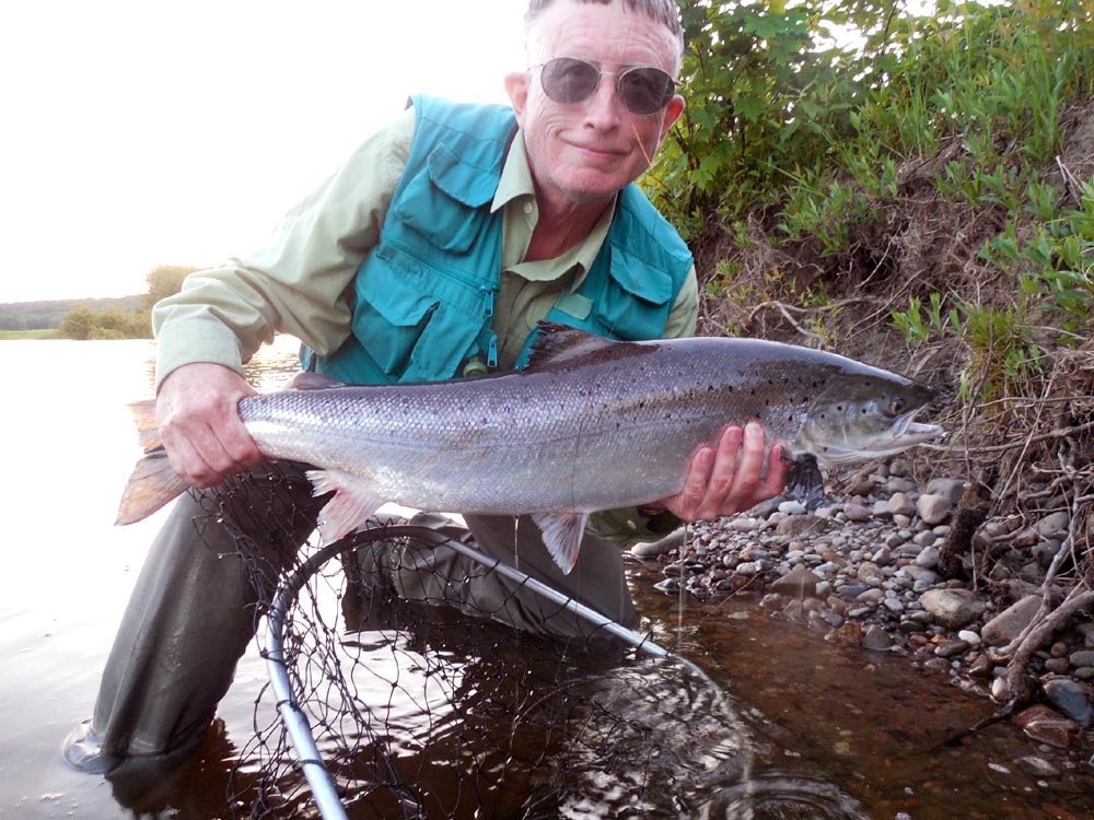 We would like to say "Thank You" to Paul Carleton, owner of Affordable Adventures who has been sending us fishing guests and personally fishing with us now for many years. Paul has landed hundreds of Atlantic Salmon while fishing the Miramichi with us over the past 10 years. Here are a few photos of some of the Atlantic Salmon Paul landed while here with us for three days. Even though conditions were not perfect, Paul still landed some great fish. Here are photos of some of the fish he landed. Any one of these beauties would make any angler happy. Congratulations Paul, on 10 great years of working together in bringing anglers to fish for Atlantic Salmon on the Miramichi River.