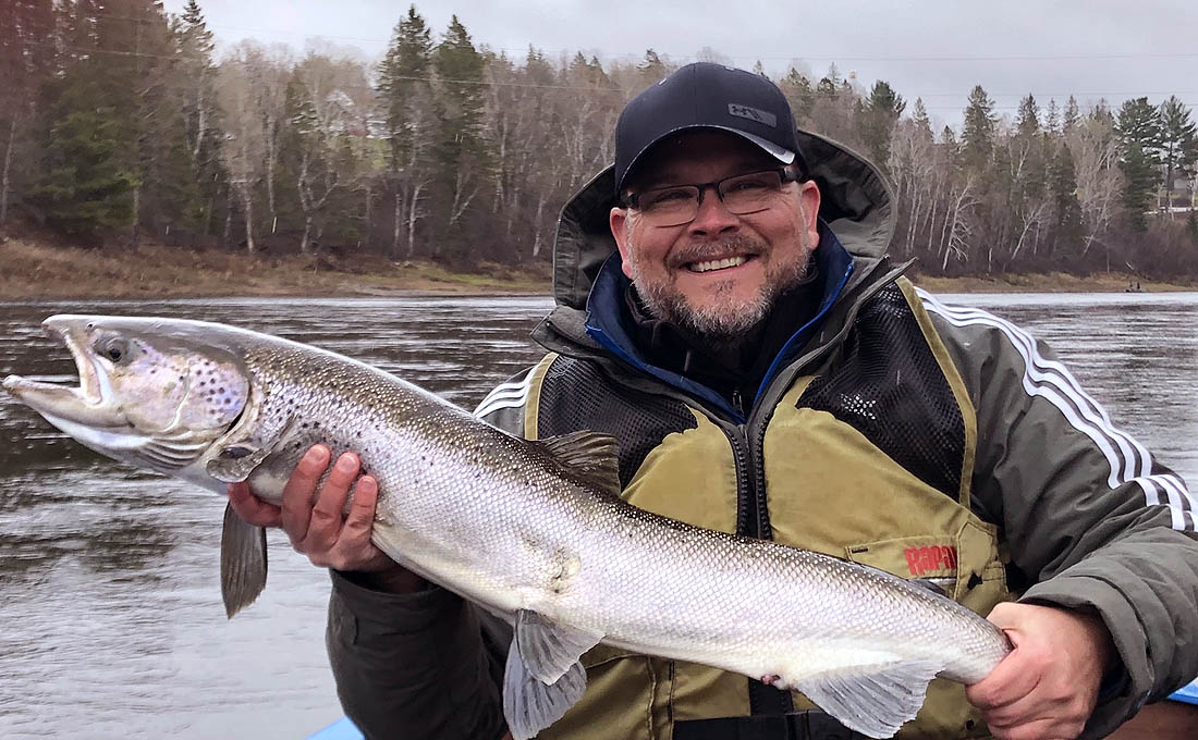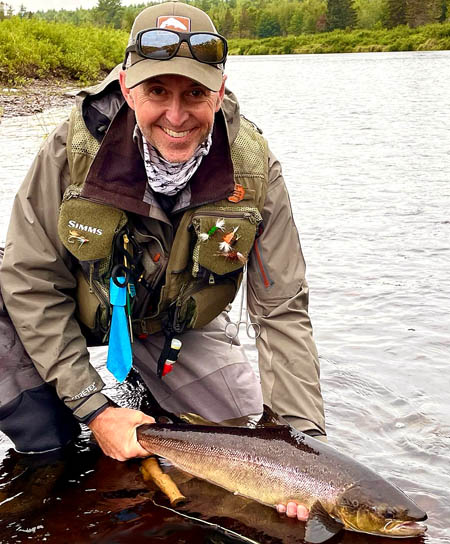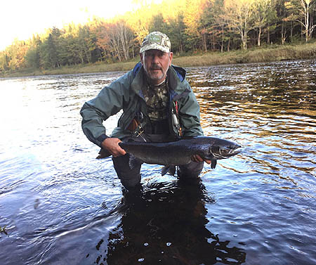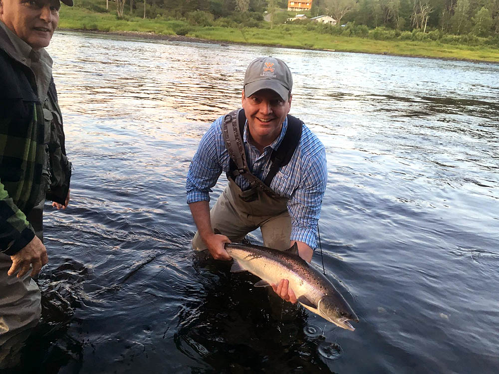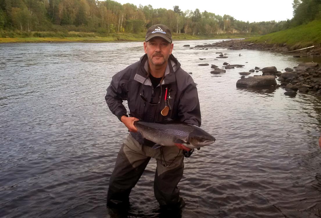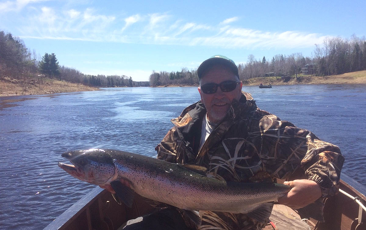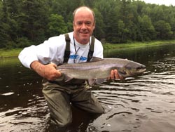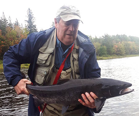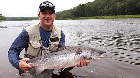 We would like to say "Thank You" to Paul Carleton, owner of Affordable Adventures who has been sending us fishing guests and personally fishing with us now for many years. Paul has landed hundreds of Atlantic Salmon while fishing the Miramichi with us over the past 10 years. Here are a few photos of some of the Atlantic Salmon Paul landed while here with us for three days. Even though conditions were not perfect, Paul still landed some great fish. Here are photos of some of the fish he landed. Any one of these beauties would make any angler happy. Congratulations Paul, on 10 great years of working together in bringing anglers to fish for Atlantic Salmon on the Miramichi River.