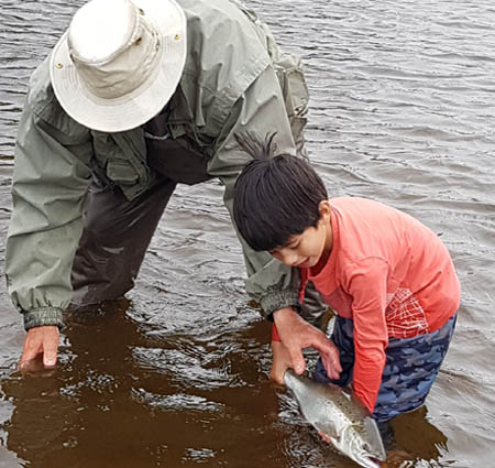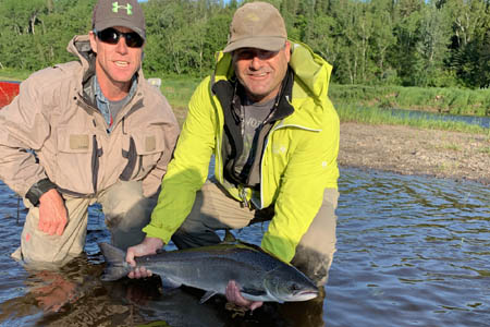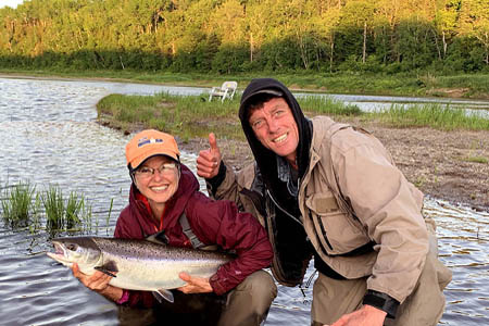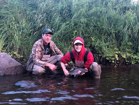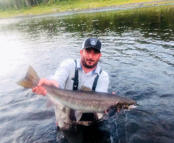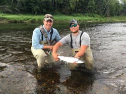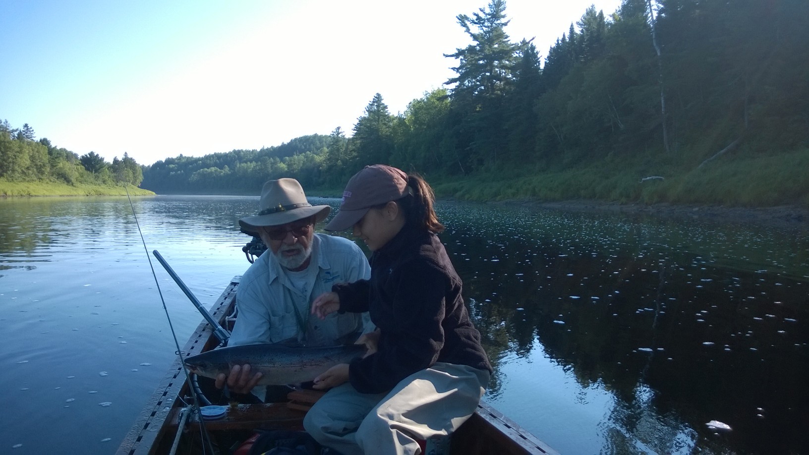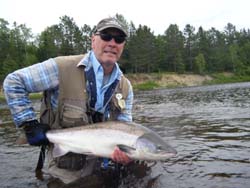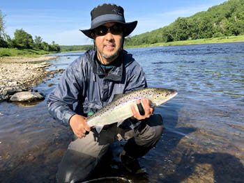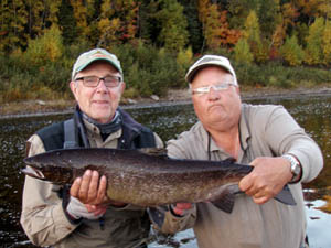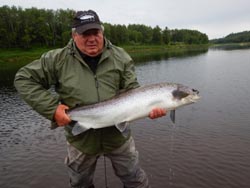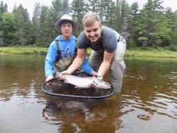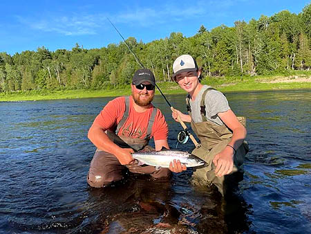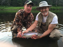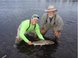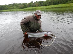Every week that passes makes for a number of great fishing stories to remember for a lifetime -including the 110% turnaround in the fishing from the start to the finish this week. Someone we shall never forget is our little 7 year old fishing buddy, Nathan Morency from Quebec. In all our years of operation we have never seen such a dedicated 7 year old who dressed, fished and acted the part of a seasoned fly fishermen. Guide Jeremy said that if all our anglers could cast like Nathan does then what a fun job guiding would be. #4 and #6 flies should be the flies of choice until the water falls.