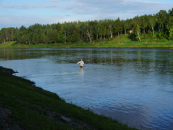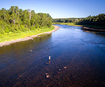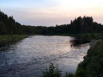 We are now receiving the kind of warm weather that we would normally expect at this time of year but with less-than-normal rainfall so its not doing much for salmon fishing. The forecast is calling for rain on Wednesday and we can sure use it but what we really need is a good soaking. So far this year, the counting fences are showing less fish than last year but as Jethro from the Beverly Hillbillies would say, "you don't need to be a brain surgeon to figure out this one". Last year was one of the best seasons since the 1960's and the past couple of years have seen ideal conditions for early fish runs but so far, this year's conditions have not been too good. Atlantic Salmon Federation rumours have it that there are large numbers of fish in the Bay waiting for cooler water temperatures. Many old-time locals also say that as far back as they can remember, a couple of good years might be followed by a slow year but the numbers usually improve with better conditions. With the warmer water right now there are more canoers ,kayakers and swimmers on the river then anglers. Fishermen that are on the river are fishing early mornings and evenings and some only in the early mornings when the water is the coolest. Even though the conditions have been poor, the water temperatures have improved a bit overall since last week at this time. A good shower on Monday brought the water up a bit on both the Nor'west and the Renous. Fishermen did quite well on both rivers for a couple of days, landing some nice salmon in a pool on the Nor'west and some grilse on the upper stretches of the Renous. The Main River and the Cains did not see any changes in water levels or any improvement in the fishing so fishing remains poor and will probably remain so until we get some serious rain. As of now there have been no new closures or openings at the locations the DFO is monitoring on the River System - including most of the Miramichi. July 23d