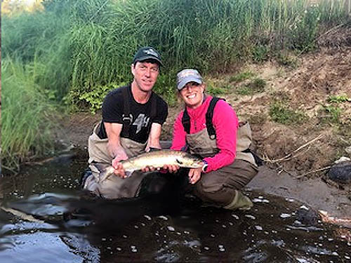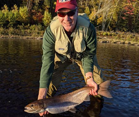 Right now we have low water levels but better temperatures and on the River, some success stories in the news last week. Rain is needed to have a great fall season throughout the system and the Cains, but even with current low water conditions, there are fish around, with some pools holding hundreds of fish with some big "fish-of-a-lifetime" among them. The cooler weather has been producing a bit of success but we are not seeing any great numbers of fresh fish yet, but there should be lots to come! The Fall runs will come, even with low water, if it is cool as the fish have a job to do and need to get it done! We have had low water conditions into September and October in some past seasons, with great fishing, especially in 2018 when it produced some of the best fall fishing on the main river in years - in the lower river pools - as fish started trickling in daily from Mid-September on, so fishermen are hoping for the same results this fall. The long range forecast is calling for some rain mid-week and everything could sure use it as our fall fishing begins. Flies of Choice have been #10 Undertaker, Bear Hairs - wet & smaller Peach Carter Bugs - dry.