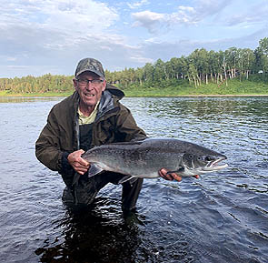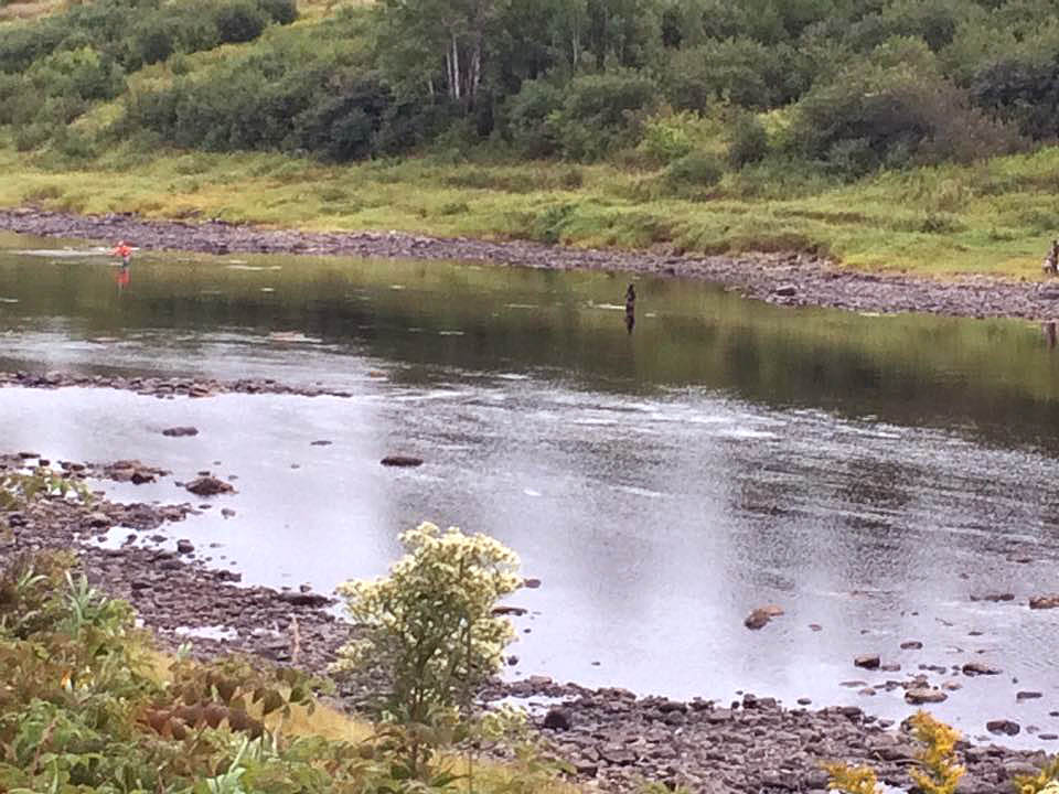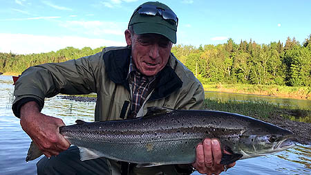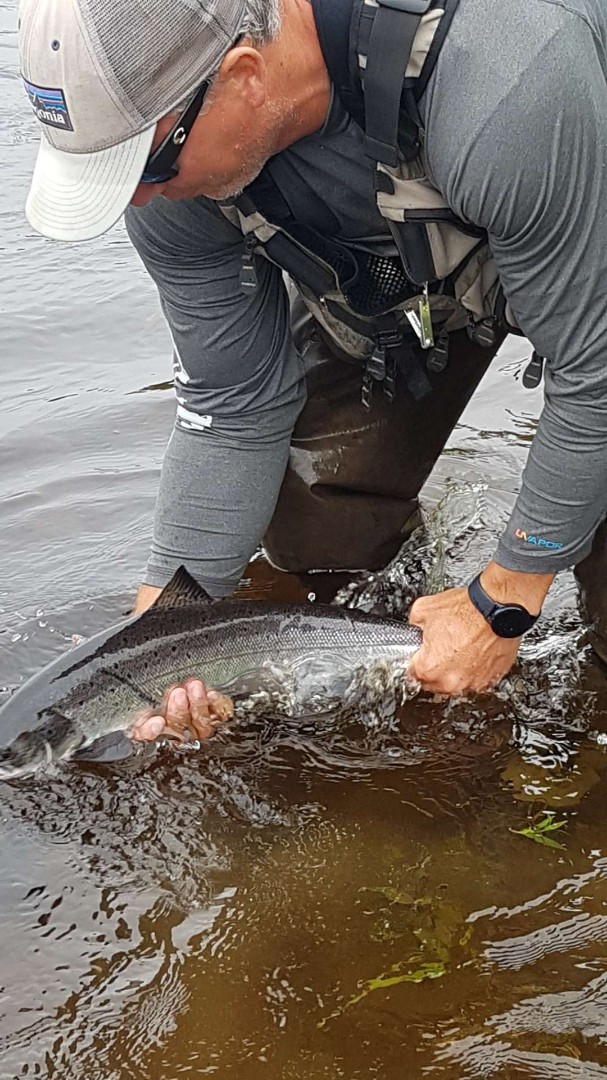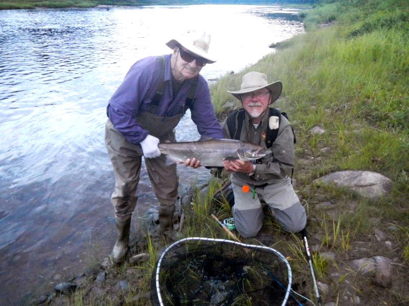 With a water temperature of 63F on Monday morning there were some nice fish landed on the river, including 10 at the mouth of the Renous river. Nigel Blackley from Macllesfield England landed nice 17 and 15lb salmon yesterday - one on a #10 Green Machine and the other on a Bomber. We leased one of our pools to an upriver Outfitter yesterday evening and they landed 4 nice salmon. August normally has some big salmon and as we know, not many came into the river last month so it appears that they are arriving now. It was a long time coming