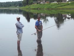 There are still a few spring salmon in the system but any hookups now will probably be by anglers fishing for trout. The Gaspereaux are now entering the system so we expect the Sea Trout soon. We have had no reports of any Bright Summer Salmon yet but it should not be long. This time of season is normally what we call the In-between-season - too late for Spring Salmon and too early for Bright Salmon. Some fishermen are spending their time fishing for Striped Bass in the Lower stretches of the River and the catches have been fantastic. Fishermen from Boston, New York and Rhode Island, who have fished for Stripers for years throughout the Eastern Coast of the U.S. said they have never seen so many bass after fishing in the Miramichi area a couple of times last week. They stated that they come to the Miramichi each year for the Atlantic Salmon, the King of Game fish, and will never come to fish only for stripers - no matter how good the striper fishing is. However it is a good change of pace on slower days of Atlantic Salmon Fishing.