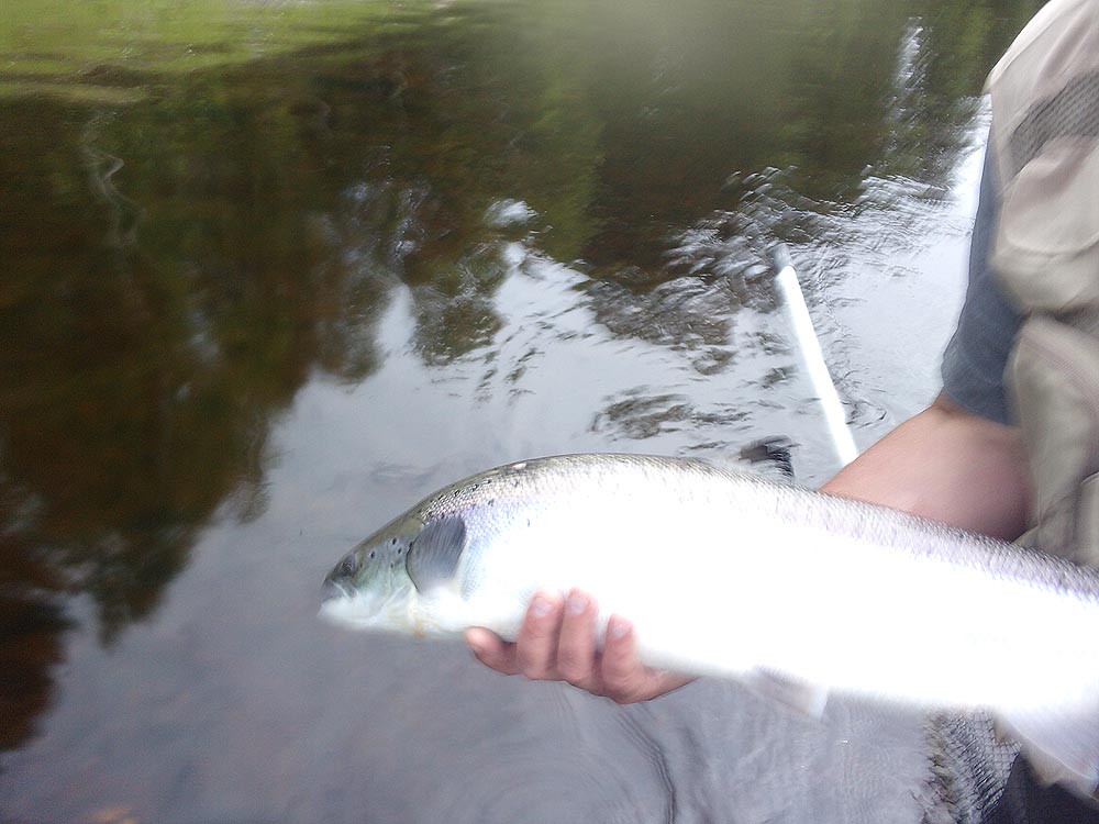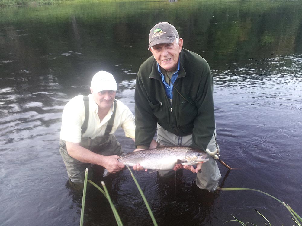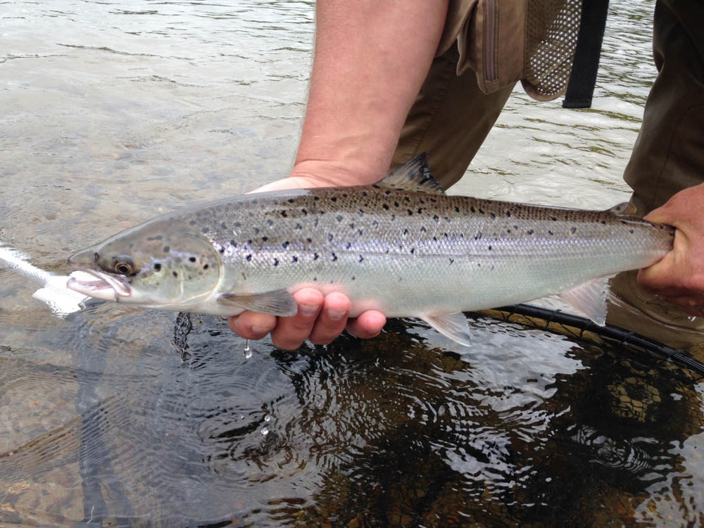 July has started off much better than most of June but results are still not quite as good as last year at this time. Most of the fish in the system right now are all big Salmon so there are not as many fish showing as Salmon tend to jump less than Grilse. Our anglers have only landed one Grilse so far this summer but there have not been a lot of complaints from the fishermen who have been landing the 20+ salmon. Andrew Moy of East Coast Spey from NJ was with us again this past week and what great clinics these guys always put on. With the water now falling, a full moon and good temperatures, we are hoping for some great July fishing. So far this summer, the White Tail Green machine has been the best fly and the Green Francis has also worked well in high water. As the water falls, fishermen should soon start having more luck using traditional July flies and Bombers. At our location on the lower stretch of the river, we see many of the fresh fish as they swim past us on their journey upriver. Every day now we are seeing more movement following each high tide and we will probably see more grilse entering the system this coming week.