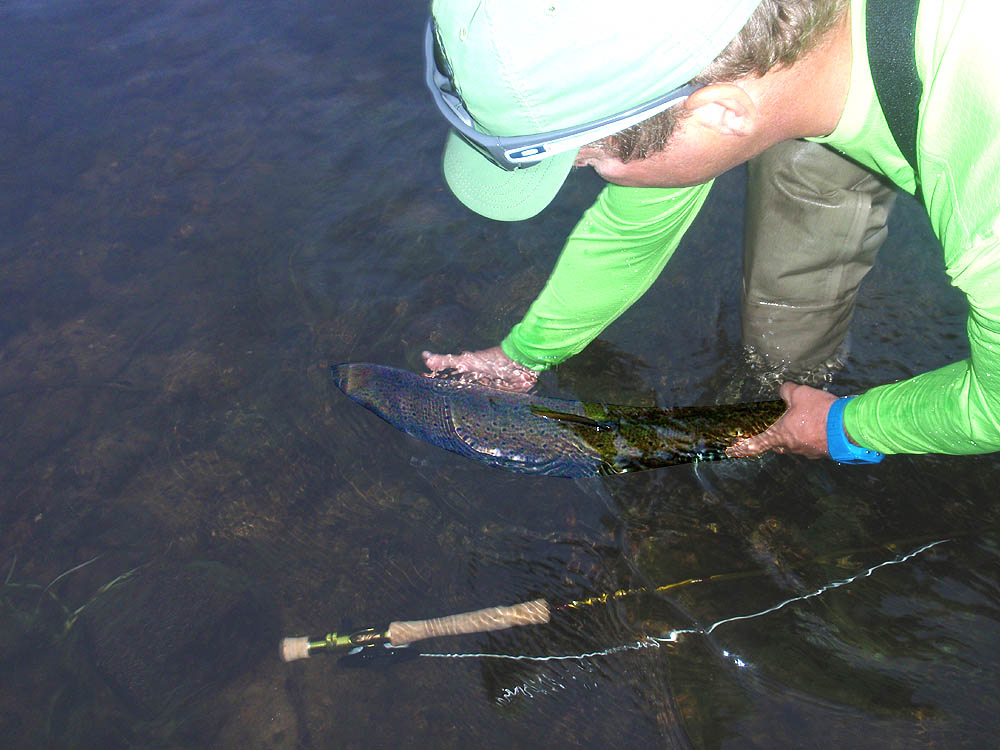 This week, best flies were the #8 Undertaker, White Tail Green Machine and dry Peach Carter Bug.