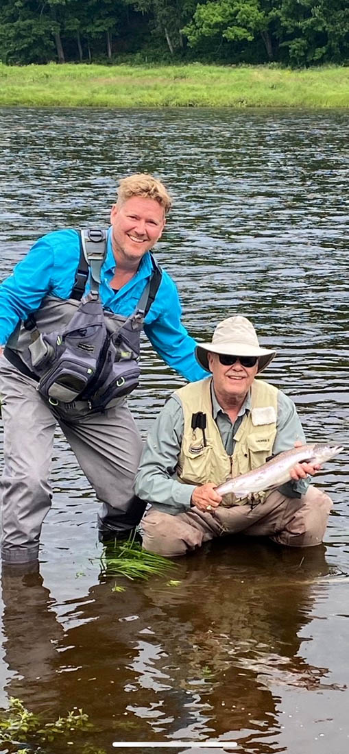 Anglers are still picking up fish throughout the river system but not as many are traveling, preferring to pick the pools with fish in them and take their chances - unlike earlier in the season when fish were moving and the rule of "being in the right place at the right time" applied. The fish are starting to hold up more and fishermen are having the most success using "Peach Carter Bugs" & "Bombers". As with all our guests, it's always great to have them returning - especially the ones that have not been returning to the Miramichi due to travel restrictions - however things are improving and now opening up again! Longtime returning guest Bill Mather was our first "out-of-Atlantic-Canada-Bubble" guest, which makes another "first" for Bill, as he also holds our record for "first fish of the season" in 3 of the past 20 seasons.
