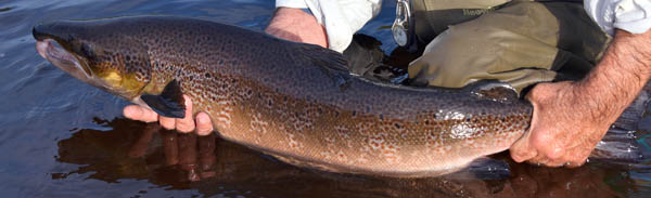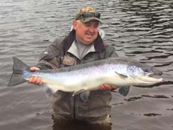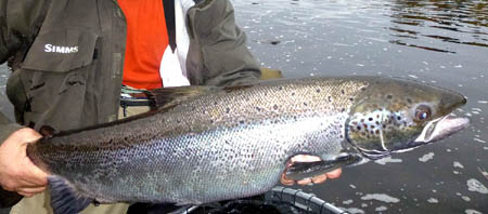 We have enjoyed perfect weather, perfect conditions and quite consistent fishing this week with all our fishermen averaging between 2 -10 fish daily. The ratio of salmon to grilse has been 75% salmon and 25% grilse with some really large salmon hooked daily, including a 50 inch beauty landed yesterday - something we have only experienced a couple of times throughout the years. The anglers who were casting had the best results using sinking tips. Yesterday and over the weekend as well we even hooked a few using floating lines - lines we might normally use later in May - as the great conditions this week have been more like May than April. The Gray Ghost, Black Ghost and Magog Smelt have been the most productive flies.