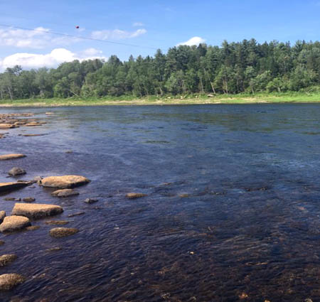After two full months of very consistent Atlantic Salmon fishing - probably the best since 2011 - it quickly came to a screeching halt when the weather temperature hit 100 degrees Fahrenheit! It did not take long for waders to be replaced by swimming trunks and fishing replaced with canoeing, kayaking and swimming - it became too hot to fish, too hot to work, even too hot to even talk about it. As the Old Timer's called it... "The Dog Days of summer" had arrived. Now the water is low and warm on all stretches of the river system and the forecast is calling for good rain over the next few days. The forecast for the weekend is looking up however it will depend on how much rain we do receive from the storms and the what the temperature levels are. It is again starting to look very promising for the fall, especially for September and October, with normal cooler conditions in the forecast.