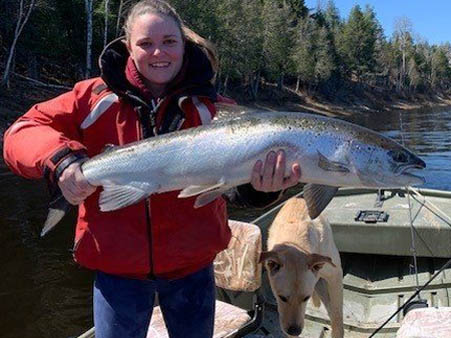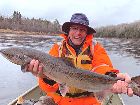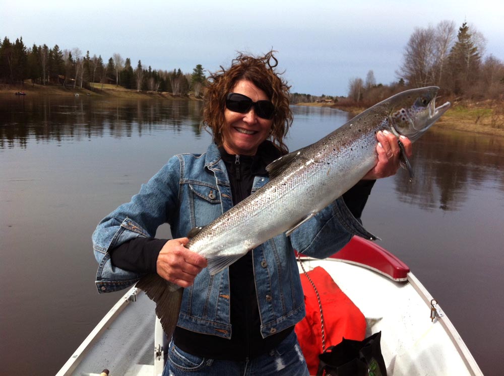 I must admit, the largest Salmon landed on the river this week was by Robert Lurche from Bathurst NB, but the ladies really owned the river throughout the week, making for another fantastic week of Atlantic Salmon fishing. Spring is such an ideal time of the season for the entire family to enjoy river fishing. Our guests have been enjoying great success - from above Blackville, to Quarryville - catching lots of Salmon, some Trout and Striped Bass, but by all reports, the entire river system has been fishing very well! We received good reports from Carl Wilson in Boistown and Kyle Price in Doaktown on Wednesday, to fishermen in Miramichi City yesterday and everwhere in between - that’s over 100km of Wild Atlantic Salmon river! As one of our guides described it, "( I might not be the smartest fish in the pond but that is a wack of salmon in the river )". Flies of choice this week were the "Renous River Special", "Christmas Tree" and the "Bill Mather Bunny Strip". There are lots of fish in the river, good conditions for both sinking and sinking tip lines and this week we are expecting that fishermen in some areas will also start catching them using floating lines only.