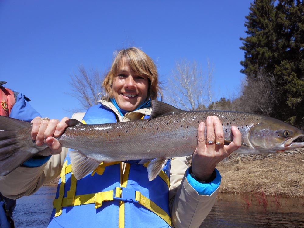 With the exception of the first two days of the season, conditions this past week have not been the best as the water was rising almost daily until this past weekend. Fishing was not as good as it should have been for the first week of the new season. However, with the water now falling again, we expect that our best spring fishing has yet to come. Even though the conditions have not been that good, what with the dirty water, fishermen who were casting had the best luck. There have been many reports of fish throughout the entire river system which is good news for the river. The most productive flies were large bright streamers with Marabou patterns working the best.