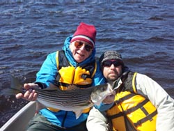 With the spring fishing season now moving into its 4th week, there is still a lot of good fishing remaining. The spring Salmon catches are slowing, even though this week we are still receiving good reports from upriver to Doaktown, along with reports of excellent fishing in Blissfield on Friday. With the cooler water temperatures, fishermen will probably still catch a few for a while yet, as the fish are moving slowly. They are still catching some dark Trout in the White Rapids and Quarryville area. Striped Bass fishing from Quarryville to Redbank via Miramichi City - and everywhere in between - has to be considered the best Striped Bass fishing in the world, a title the Miramichi has always received for the Wild Atlantic Salmon. Many say both species can’t co-exist together for too long but let’s hope they can, as it does not look like the Bass are going anywhere soon and it's looking like the "Stripers" have become THE 'species of choice' for the DFO. So for now, everyone is enjoying the fishing. Salmon, Bass, Trout - the "Miramichi Grand Slam" - are being caught daily! The water is still at a good height for canoeing the tributaries and with the Sea Trout entering the system soon, there will be a lot of interest in canoeing adventures on the Cains River - a canoers 'paradise' in May.