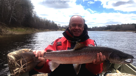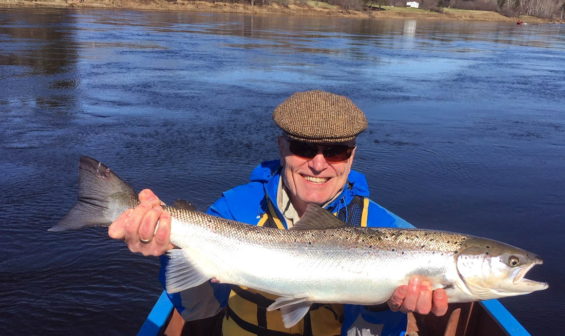 Another very consistent week of Atlantic Salmon fishing on the Miramichi. Great weather and great fishing throughout the river system. With the lower water levels, the salmon are not holding as close to shore this early in the season as in most years, making it more challenging for anglers fishing from shore. Those who are fishing from boats in deeper water locations are having the best results. Almost all of our anglers who have been casting from these locations have been limiting out daily. By all accounts it has been a terrific start to the season so far but the weather forecast suggests we might experience some cooler temperatures with a rise in water if we get the rain that is predicted. Although we really do need it we are hoping for not too much rain until after the Spring season is over. Best flies so far have been the Christmas Tree and Renous River Special.