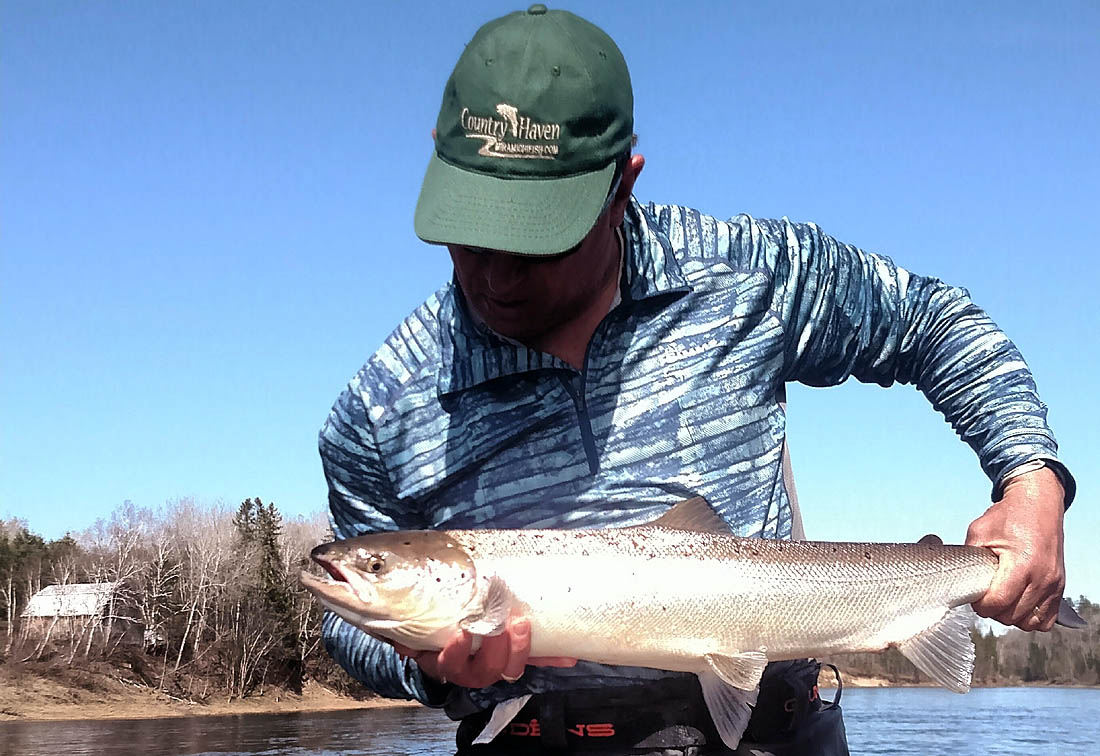 - Country Haven is again offering 27 Private fishing pools accessable to our guests thereby providing access to one of the greatest variety of private Wild Atlantic Salmon fishing pools in the Province. Note: We enjoy posting photos on our River Reports as much as possible - especially ones of 'first timers' and 'trophy catches' - but we do respect the wishes of our fishermen so not every fish landed is photographed and the safety of the fish is always a #1 priority - some are never taken from the water due to the condition of both the fish and the water at the time. We would like to thank all the anglers who have sent us photos of their success with us in the past and hope they continue to do so in the future. Only a small percentage of fish landed have photos added to the Reports and we hope everyone enjoys them. We look forward to you seeing your photos in the future. We Look forward to having you visit or follow our NEW River Reports web page in 2024 etc. - www.countryhavenmiramichi.com/riverreport |