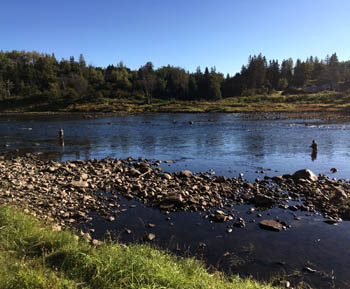 Our location on the Lower stretch of the Main Southwest Miramichi is probably one of the best locations in the entire Miramichi River System for having enough water - even in low water conditions. Although some stretches of the river and tributaries are now too low for fishing, we still have three pools that have decent fishing even when they are lower than they are right now, and another three pools that are at a perfect height for good fishing. Although many of our lower river pools are at an ideal height, the warmer weather and water we experienced over the past couple of weeks has not made for great fishing. The cooler nights have been lowering the water temperatures but when the water gets to an abnormal temperature, as was the case last week - even if the water temperature does drop it takes a rain to get things going well again.