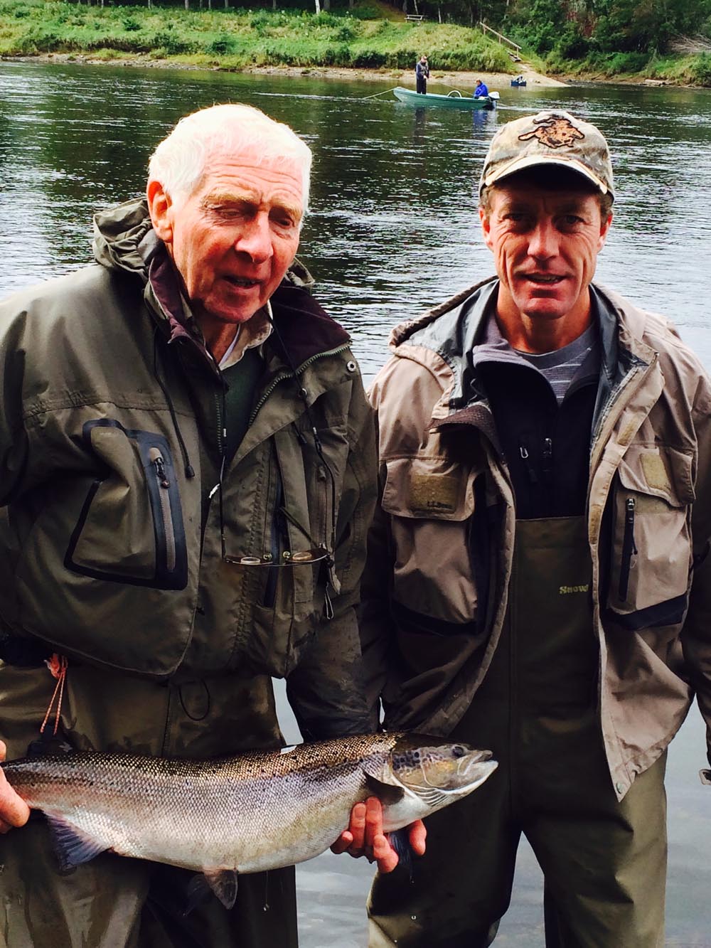 Every week some good stories are made and told on the Miramichi - first Salmon, largest salmon, the one that got away or just a great story told by our guests, including this one told by Bill Blanchard from Northampton, UK. Bill's Dad left this area for England in 1939, as a soldier in World War 2, but unlike many soldiers who returned home with a war bride, Bill's Dad remained in England, married and raised a family. This week his sons Bill and Zane returned to the Miramichi to catch an Atlantic Salmon and visit the places their Dad talked so much about. Another interesting part about this story is that Bill is probably the only person in the UK that has a boat Called the "Miramichi" with the City's colors and Logo.
