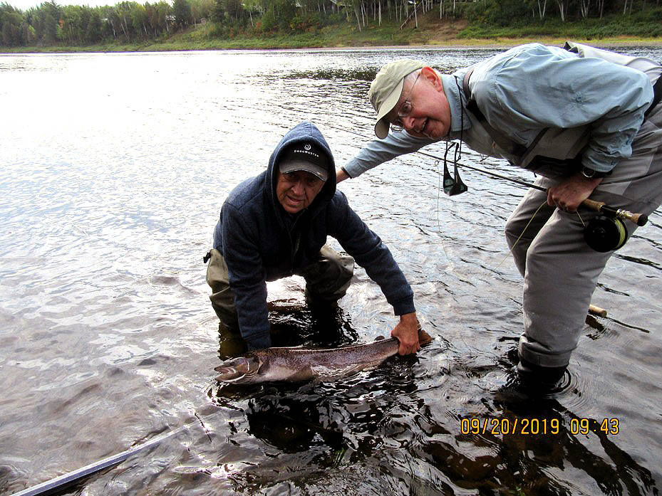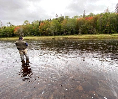 Low water levels and cool conditions made for some good hookups - using both wet and dry flies - on most days this week. A returning Nova Scotia group of Don MacLean, Robert Skinner, Ira Grant and Chuck Thompson enjoyed the most productive trip they have had over the past 5 seasons! As of today, there are mostly holding fish in the system but we expect that to change very soon as it is time! With the forecast for Tuesday of 40-50 Ml. of rain, if we get it, fishermen should be in for a great fall season, especially on the Cains River where Guides Gary & Tyler look forward to fall guiding all season. So.. with fingers crossed. we are hoping for the rain!